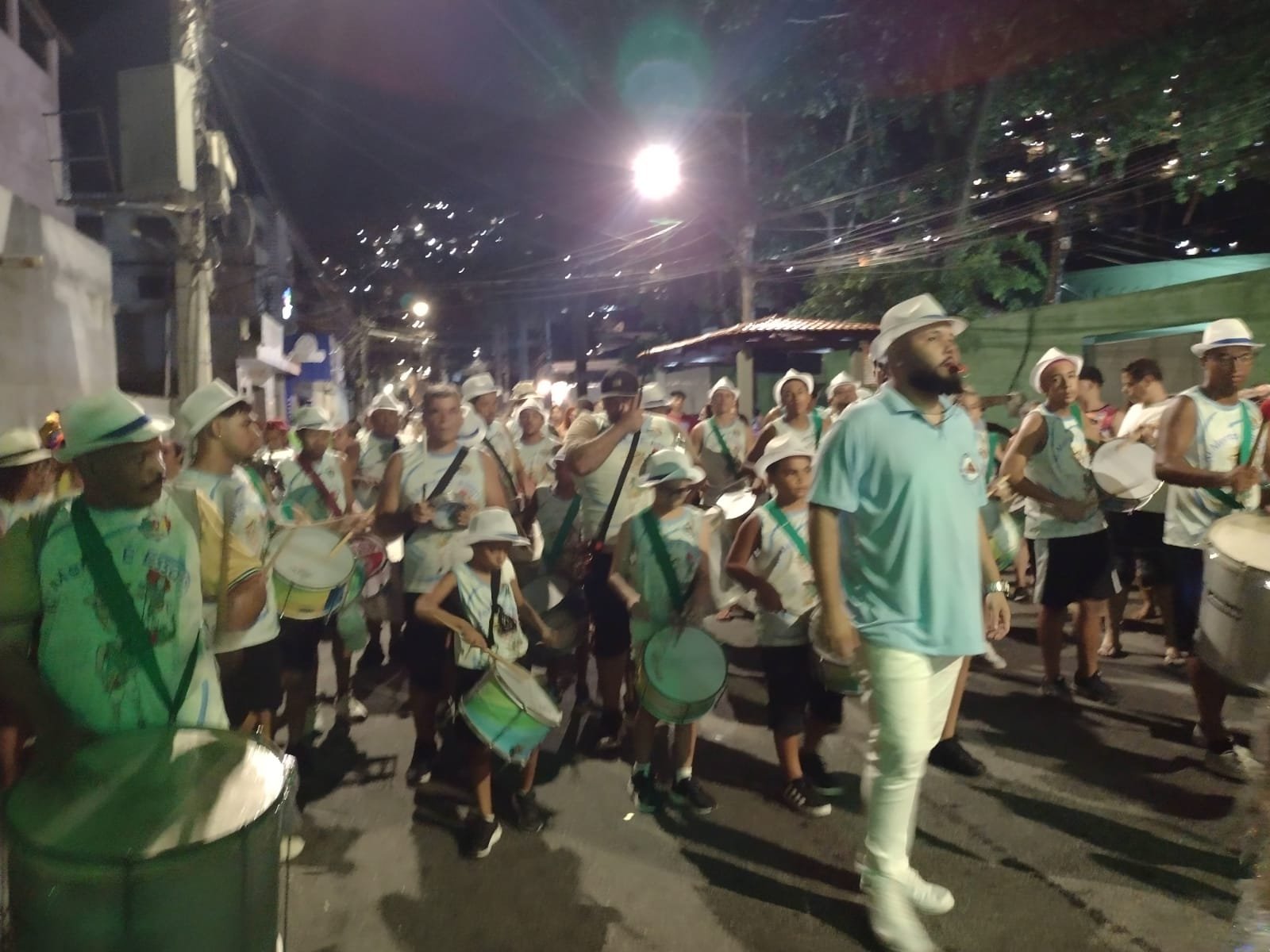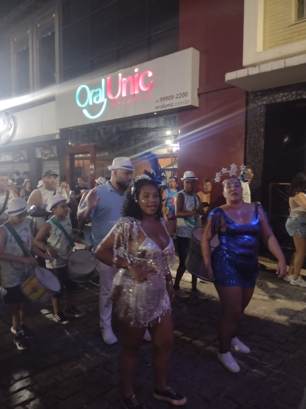 No ano seguinte José Veríssimo, o primeiro presidente que o Bloco teve, o levou para seu primeiro desfile no Centro de Angra dos Reis, com sua concentração na antiga rua das Palmeiras. Foi um sucesso e de onde não saiu mais. Foi nessa época que José Veríssimo convidou seu irmão Sérgio Veríssimo e seu cunhado Mauricio que uniram forças para seu crescimento. Suas primeiras peças da bateria foram adiquiridas de segunda mão de uma escola de samba do Rio de Janeiro e suas cores azul e branco foram definidas nesta mesma época.